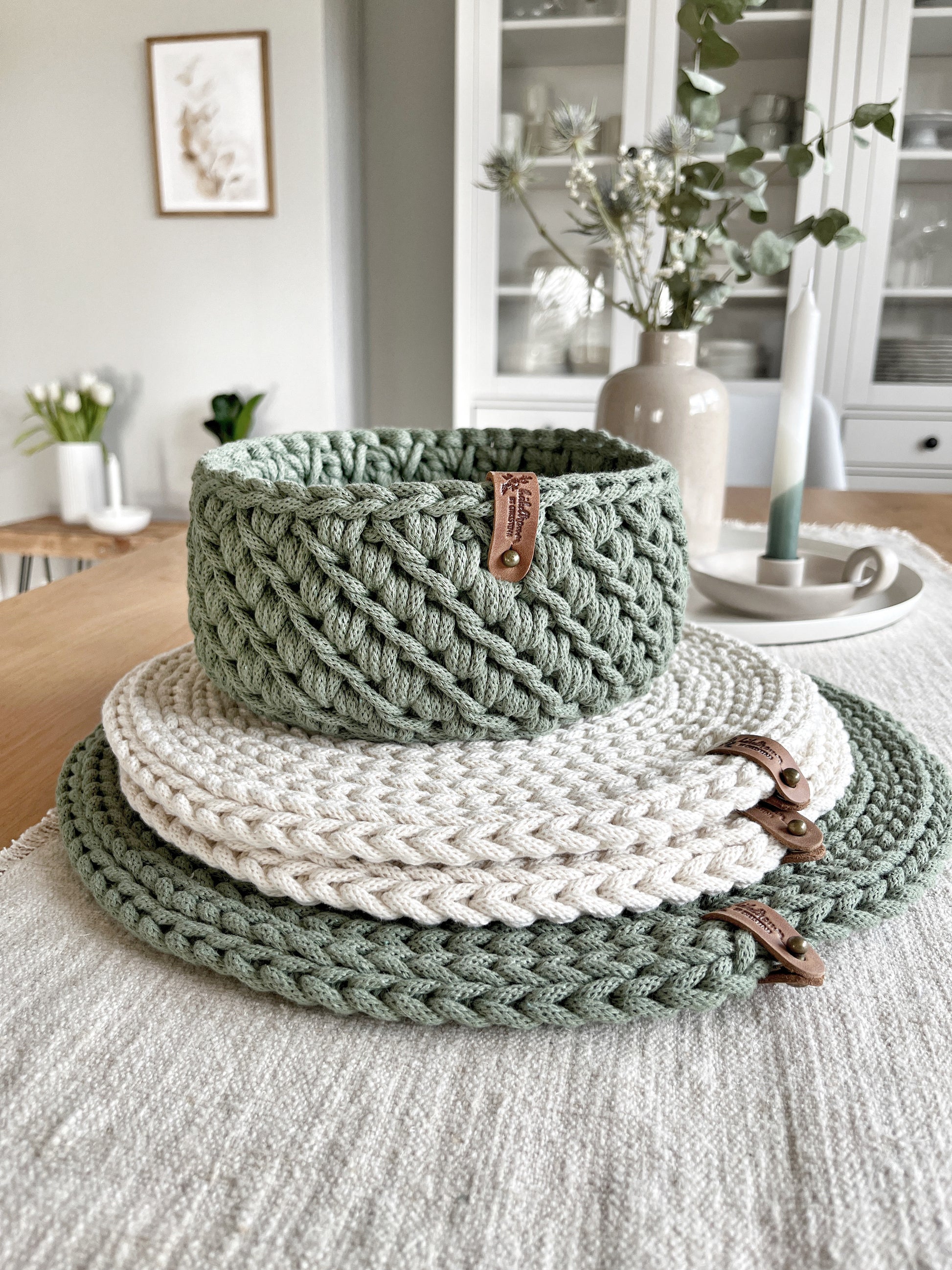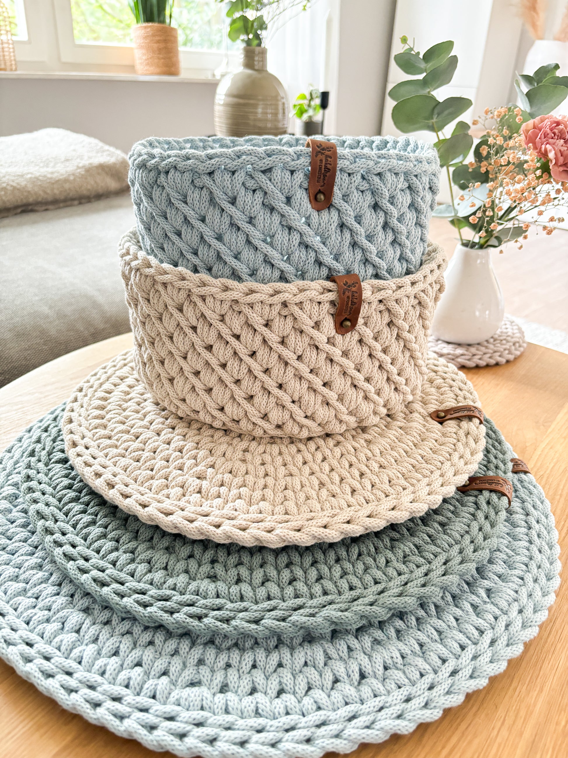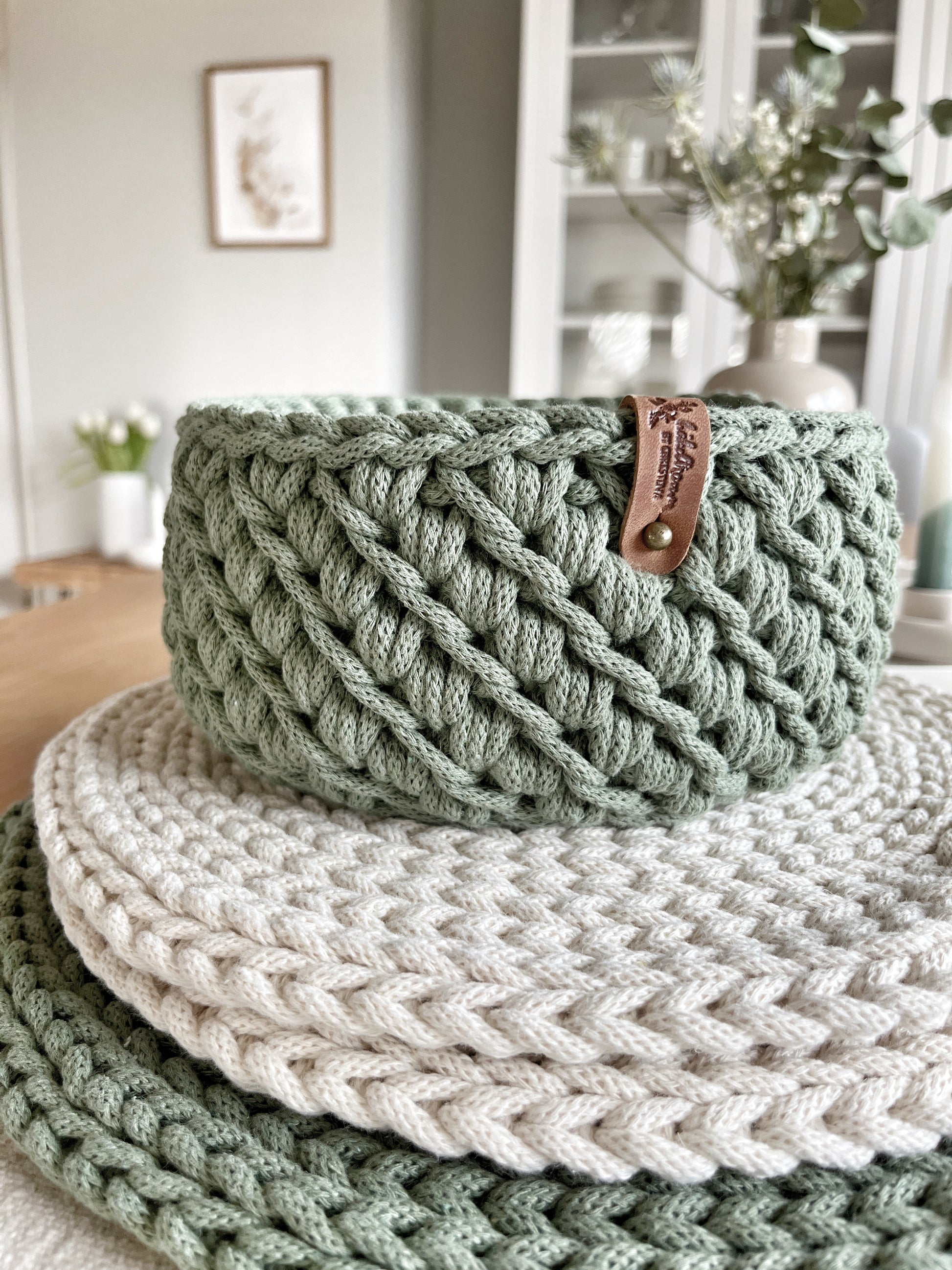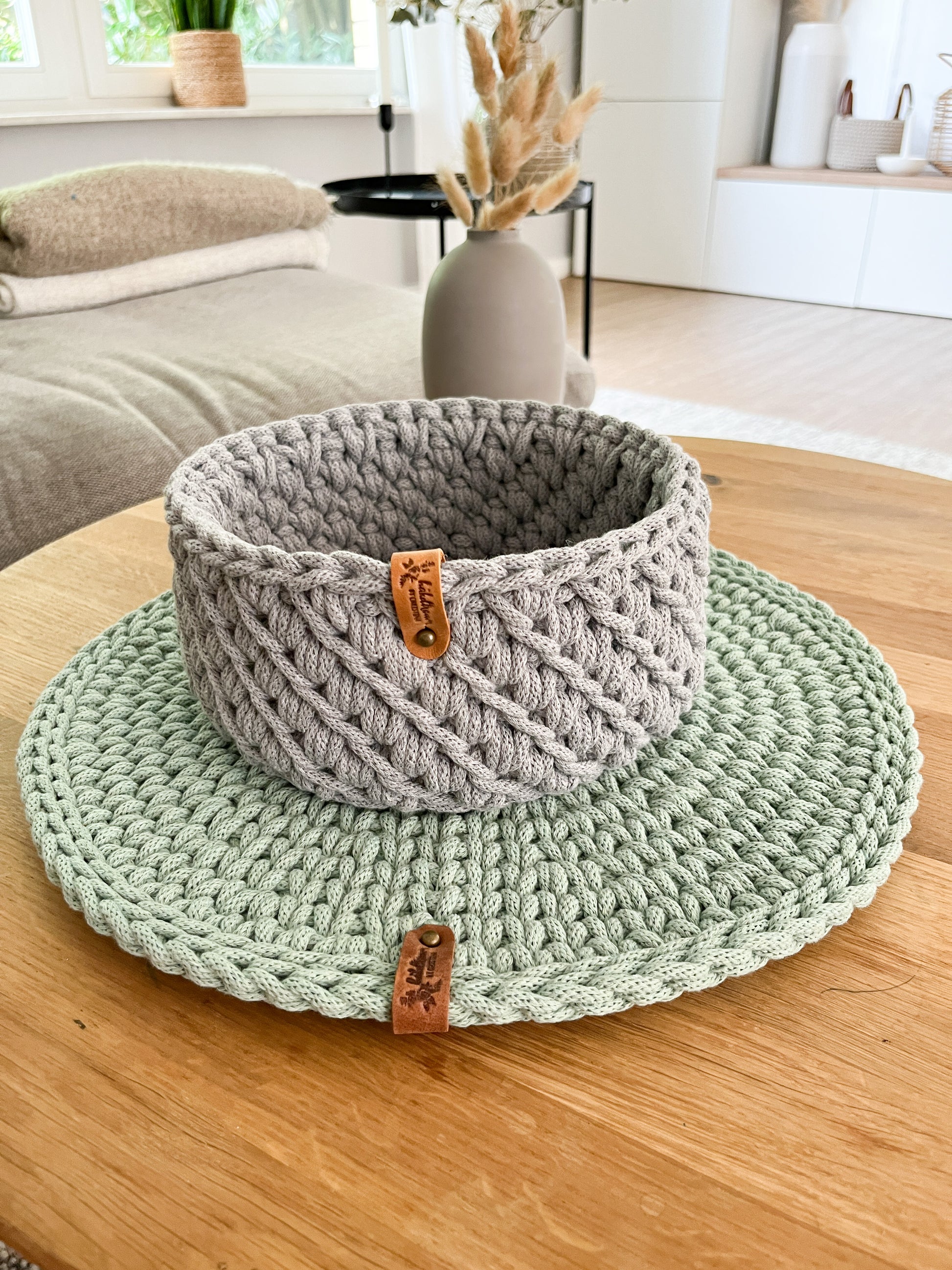 Jeder Korb wird von mir in liebevoller Handarbeit gehäkelt und mit großer Sorgfalt gefertigt. Das robuste Baumwollgarn sorgt für Stabilität und Langlebigkeit, während die weiche Struktur dem Korb eine angenehme Haptik verleiht. Dank der freien Farbauswahl kannst du den Korb perfekt auf deinen persönlichen Wohnstil abstimmen.