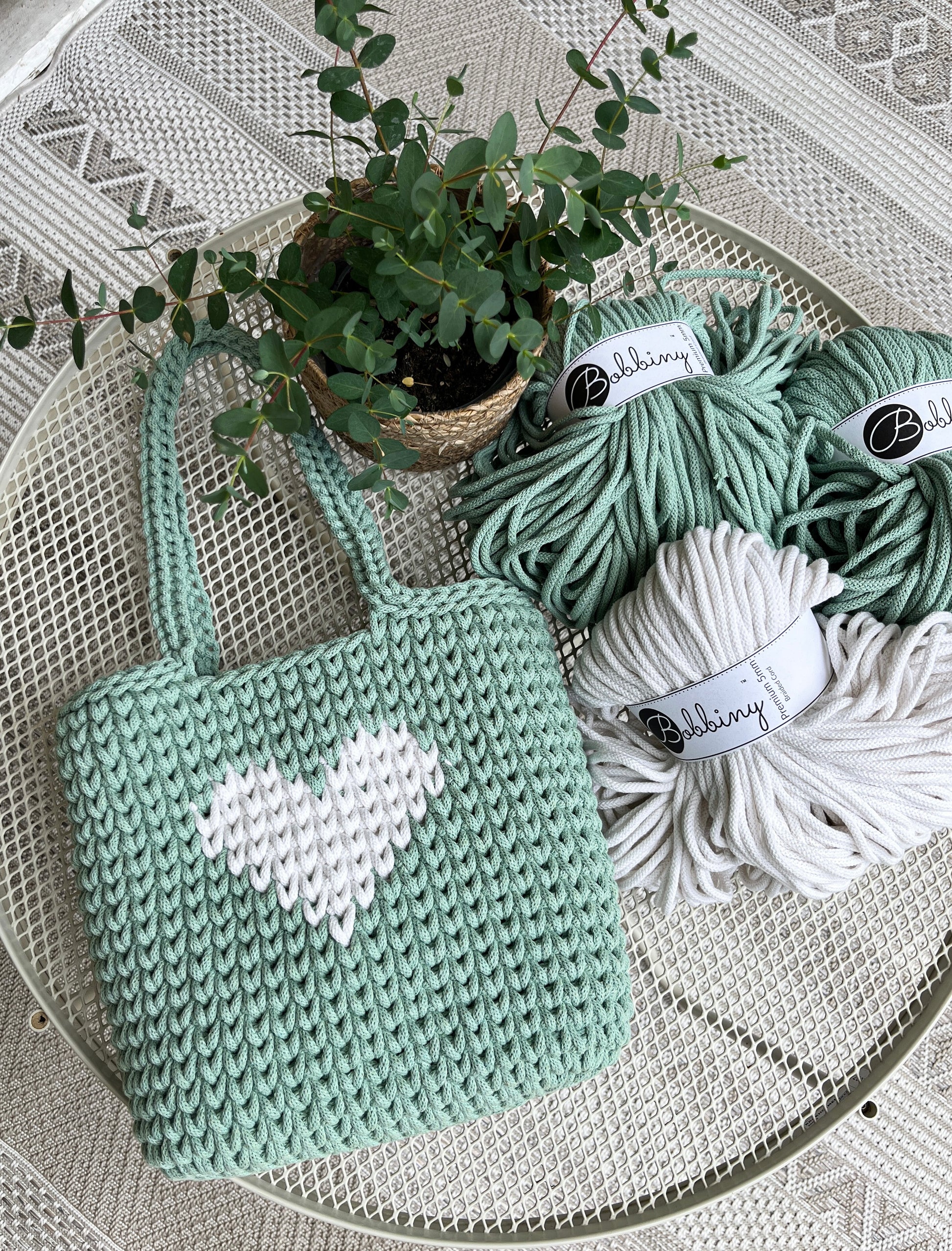 🧶 Garn und Häkelnadel findest du ebenfalls in meinem Shop – die Tasche kann aber auch mit anderem passenden Material gehäkelt werden.