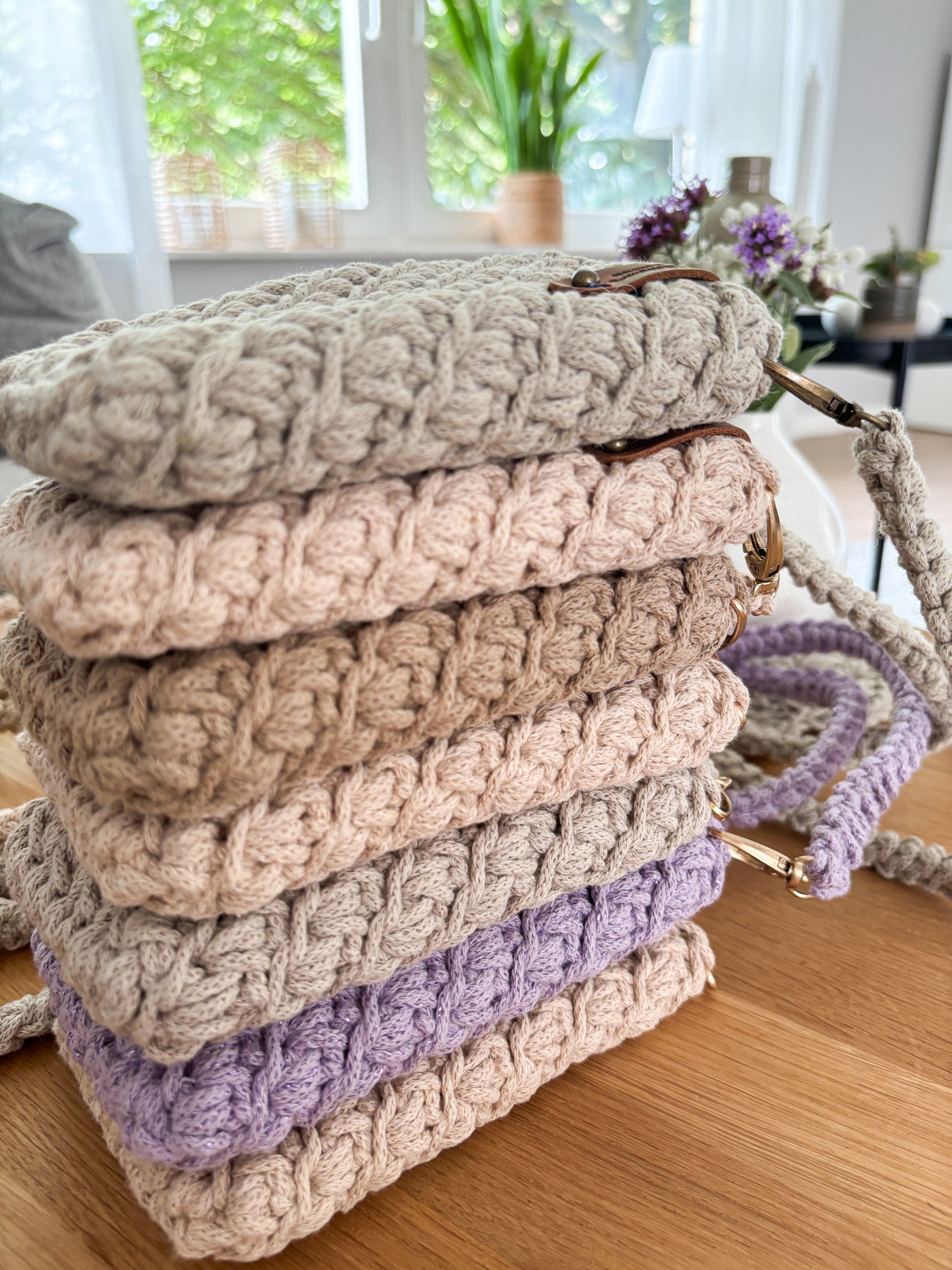 Die strukturierte Häkeloptik und der natürliche Look machen die Tasche zu einem echten Blickfang. Ideal für alle, die handgemachte, nachhaltige Accessoires mit einem Hauch Boho lieben. Durch den robusten Kordelriemen lässt sie sich bequem crossbody oder über der Schulter tragen.